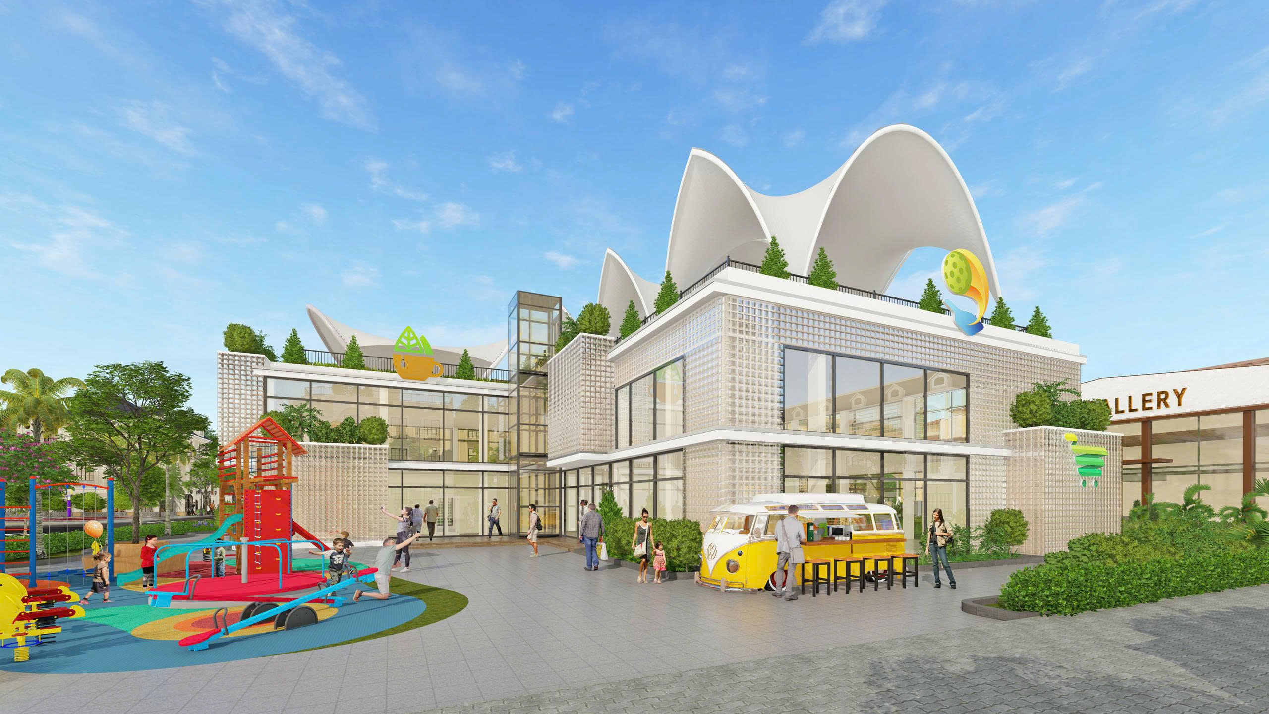 Trung tâm thương mại, hồ bơi Địa Trung Hải, trường mầm non,...